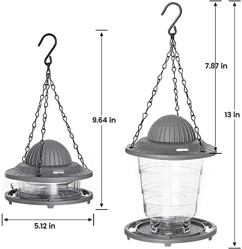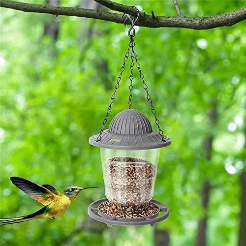 Descripción del producto: Tamaño del producto: 20 20 12.5. Capacidad del producto: 40 onzas. Peso del producto: 204.3 gramos. Peso del paquete: 295g. Material: PP + PS. Diseño humanizado: se ha montado y se puede colgar directamente. El comedero para pájaros tiene forma de sombrero y el techo inclinado protege a los pájaros del sol y la lluvia. Cuando se comen las semillas, más semillas llenarán naturalmente la cáscara. Aves silvestres como pinzones, picogrueso, jilguero, jilgueros, herrerillos, camachuelos y gorriones como cereales mixtos. Gran capacidad: puede contener hasta 40 onzas de semillas. Se puede llenar con varias semillas que atraen aves, como maní, semillas de girasol de aceite negro, semillas de cardo para atraer cardenales, tetas, pinzón doméstico, pájaros, tordos, currucas, estrellas y más. Fácil de usar: proporcione instrucciones de instalación. El comedero para pájaros está equiPado con un casquillo para mantener la tapa bien cerrada y el interior de la semilla está fresco y seco. El panel transparente puede comprobar fácilmente el nivel de semillas. Cuando necesite rellenar, simplemente abra la tapa y vierta las semillas. Nota: Revise el comedero para pájaros en busca de insectos u hongos una vez a la semana y límpielo regularmente con una solución de jabón suave.