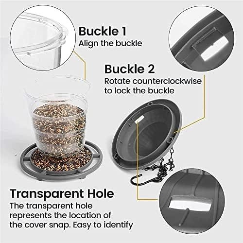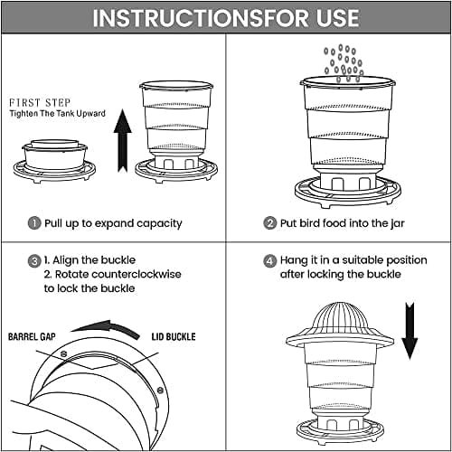 2. Gran capacidad de comida: adecuada para un 99% de comida para pájaros, puede contener 40 onzas de comida, no es necesario reponerla durante mucho tiempo