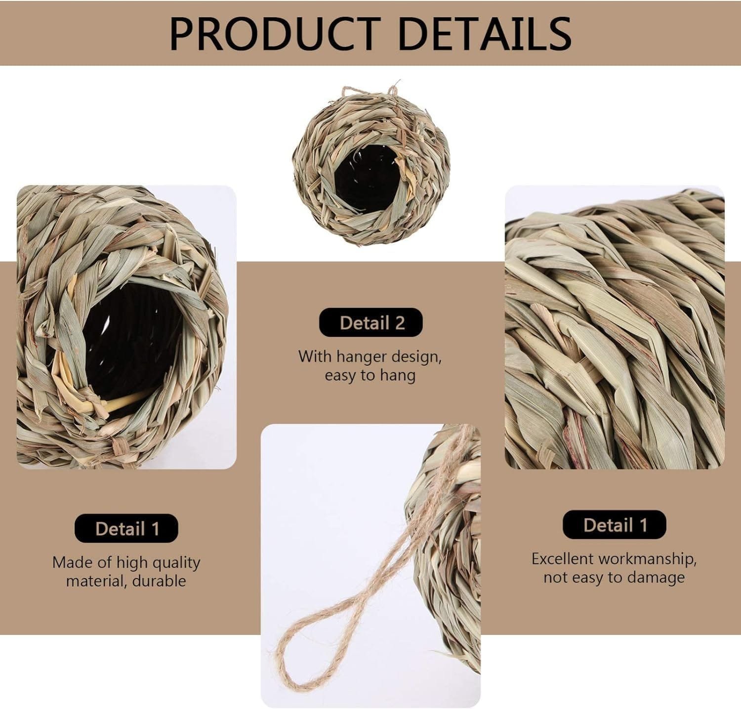 Diseño único: el césped natural puede ventilar bien, disipar el calor y disipar la lluvia. La apariencia rugosa puede aumentar la fricción con las patas del pájaro pequeño y hacer que se mantenga más estable, facilitar la entrada y salida de los pájaros y proporcionar drenaje y ventilación naturales.