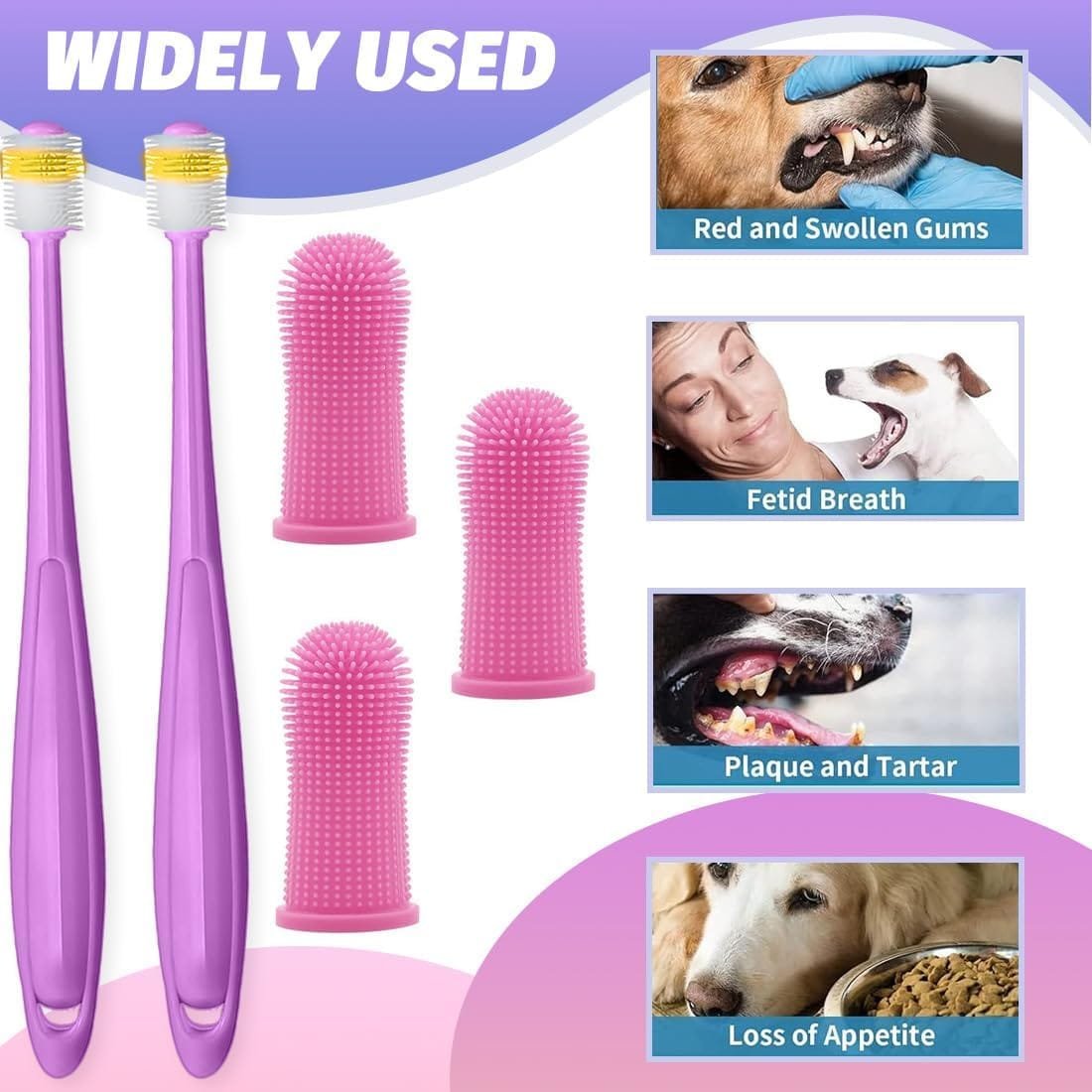【Package】Recibirá 3 cepillos de dientes de dedo para perros y 2 cepillos de dientes de silicona de 360 grados incluidos. Ayuda a combatir el sarro, eliminar la placa y desodorizar el mal olor del perro con facilidad.