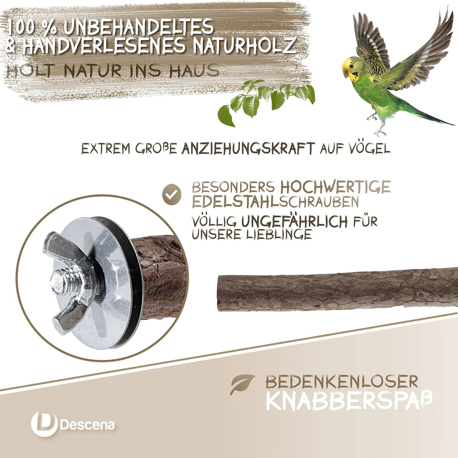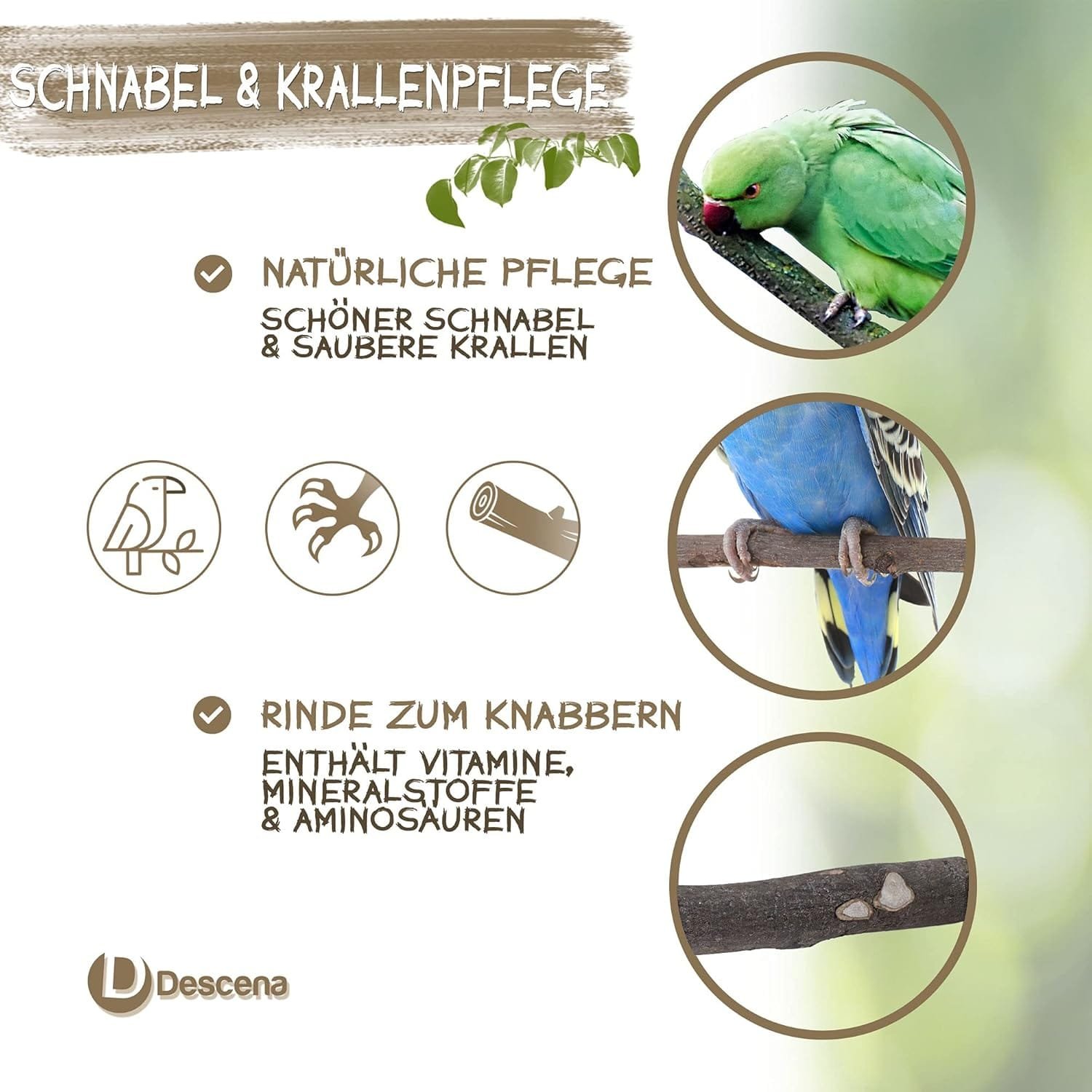 Fácil de usar: la corteza es para mordisquear. adecuado Ideal para el cuidado de garras y picos. Gracias a sus diferentes diámetros y superficie rugosa, es ideal para los músculos de agarre de los pájaros.