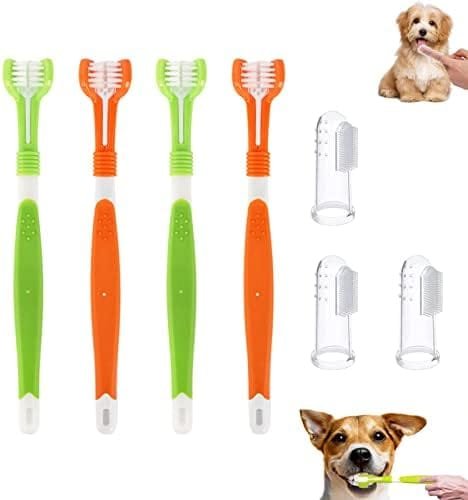 🐶 🐈 【Juego de cepillos de dientes para mascotas】: Nuestro juego contiene 4 cepillos de dientes para mascotas, 3 dedos para cepillos de dientes, suficientes en cantidad y de diversos estilos para asegurar el uso y reemplazo diario de las mascotas.