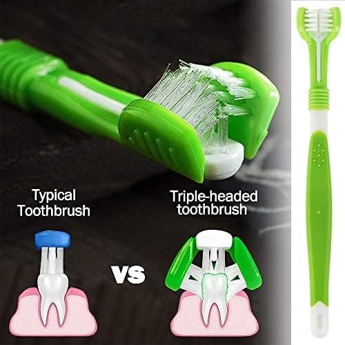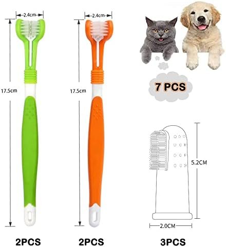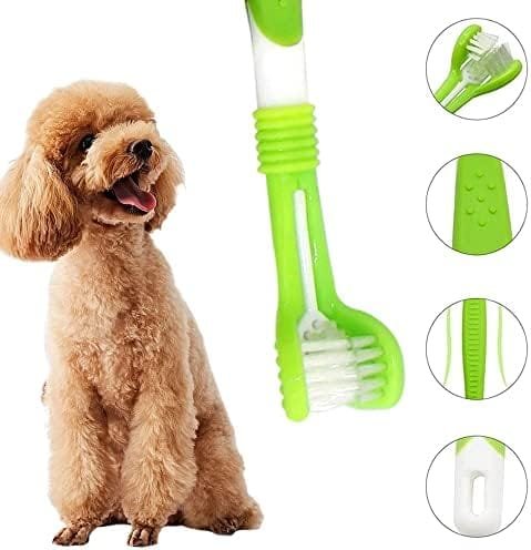 🐶 🐈 【Cerdas de tres cabezas】: Este cepillo de dientes para mascotas tiene un cepillo triple que puede limpiar la parte superior, el interior y el exterior de los dientes al mismo tiempo. Elimine eficazmente la suciedad de los dientes, mantenga la cavidad bucal limpia y saludable y evite el mal aliento.