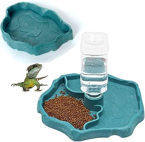 3. Diseño de tazón 2 en 1 que puede proporcionar comida y agua para sus mascotas al mismo tiempo. Borde poco profundo, da acceso a reptiles más pequeños.