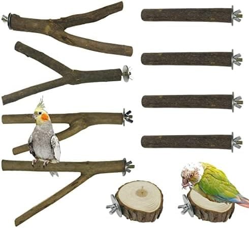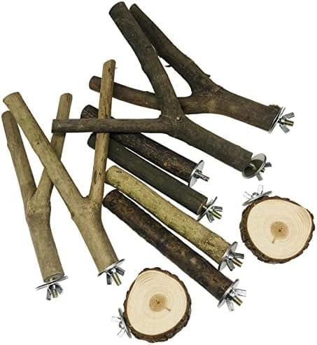 El paquete incluye: soporte de percha de bifurcación de madera de 4 pz, soporte de percha de pájaro sin rama de 4 pz, plataforma de soporte de madera redonda natural de 2 pz. Plataforma de madera de cantidad suficiente para sus pájaros.