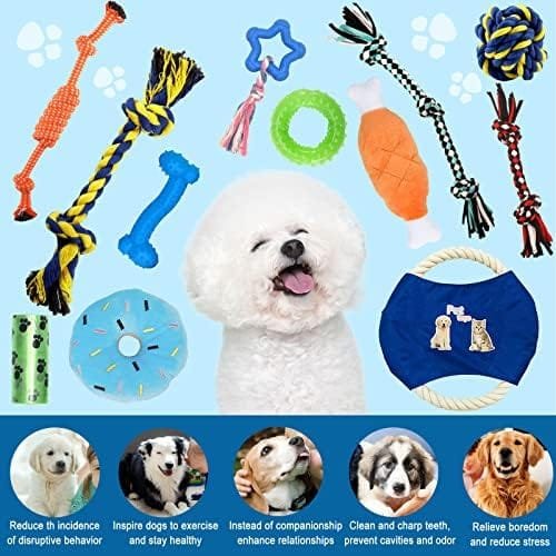 Amayga Juguetes para Perros, Juego de 20 Piezas de Juguetes para Perros, para Cachorros pequeños y medianos, Cuerda de algodón 100% Natural, Juguetes para Masticar duraderos, Herramientas de Entrenamiento
