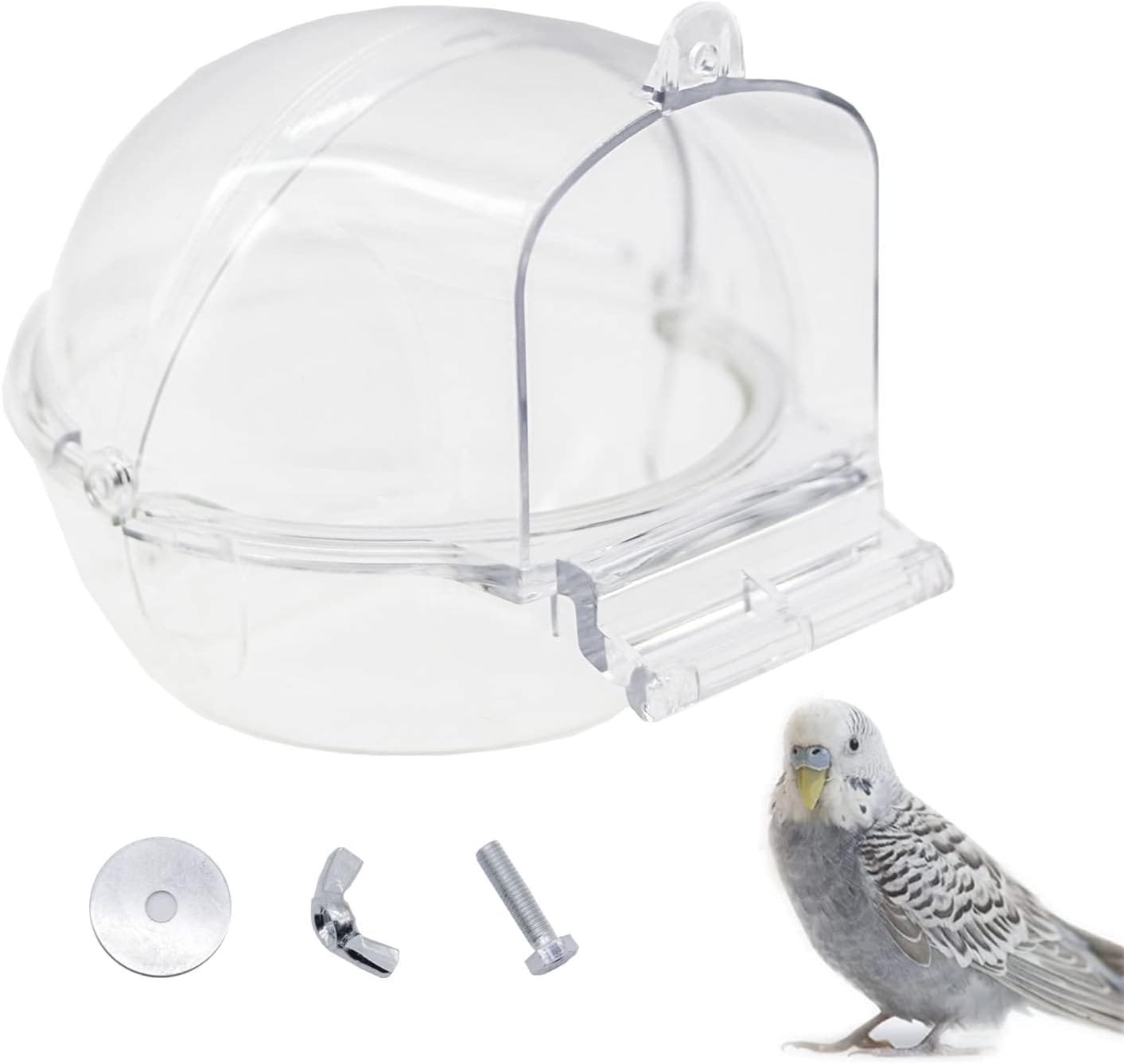 Bañera para pájaros, bañera para pájaros, comedero colgante para pájaros, accesorio para jaula de pájaros, pinzón, periquito, canario, loro, único, transparente, 1 pieza, 16 x 14 x 9,3 cm