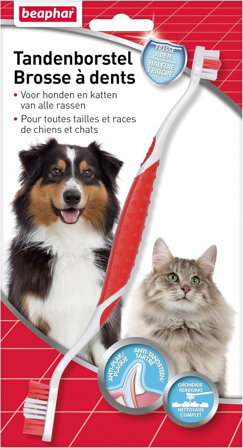 La marca Beaphar se fundó en 1942 y se ha convertido en una actriz líder en el mercado del cuidado de mascotas. Produce y vende productos de salud, cuidado y alimentación para mascotas con una excelente relación calidad-precio. Los productos Beaphar ofrecen la misma eficiencia que las principales marcas competidoras. Fabricado en fábricas con certificación BPF (fabricación práctica). El cuidado Beaphar cumple con estándares de calidad precisos. El cepillo de dientes permite una limpieza profunda y precisa de los dientes de tu mascota. El cepillado regular elimina la placa y reduce el mal aliento. El cepillo de dientes permite una limpieza profunda y precisa de los dientes de tu mascota. El cepillado regular elimina la placa y reduce el mal aliento. Las cerdas del cepillo no tienen el mismo tamaño para limpiar los dientes en ambos lados y garantizar una limpieza profunda. Esto permite una limpieza profunda y precisa. Humedezca el cepillo de dientes Beaphar, aplique pasta de dientes en una de las dos cabezas. Después de eso, cepille suavemente todos los dientes hasta que estén limpios.