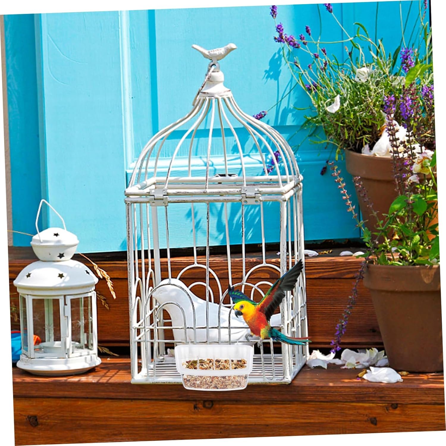: nuestros comederos para jaulas de pájaros hacen que su jaula de pájaros esté más con menos desperdicio de comida, un buen ayudante para los comederos de pájaros de su jaula para exteriores.