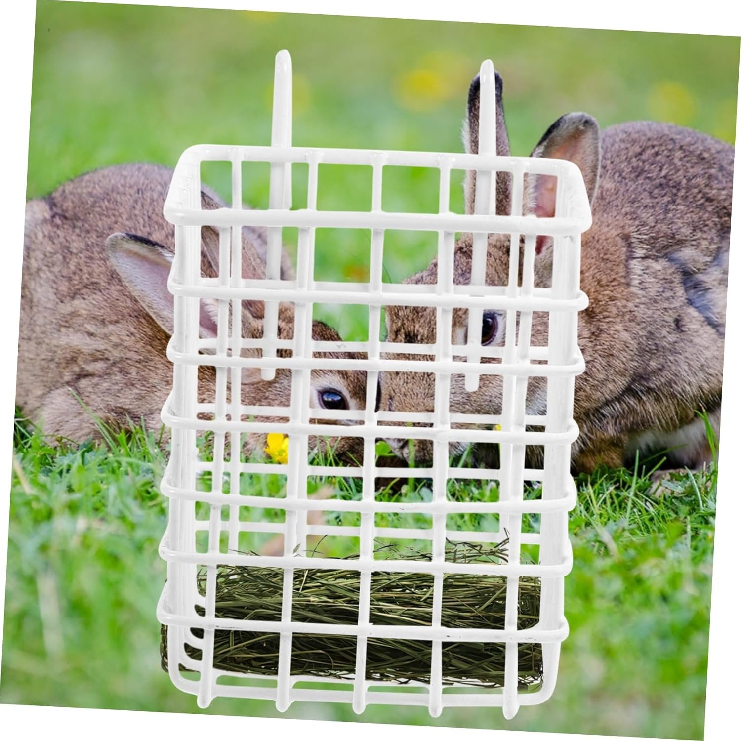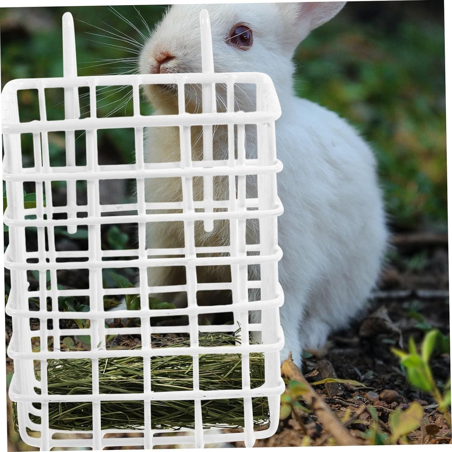 Comedero para conejos colgante en jaula: la rejilla de hierro es segura y duradera, no se decolora ni rompe fcilmente, debido diseo especial, el comedero es completamente seguro para animales pequeos, conejos comederos.