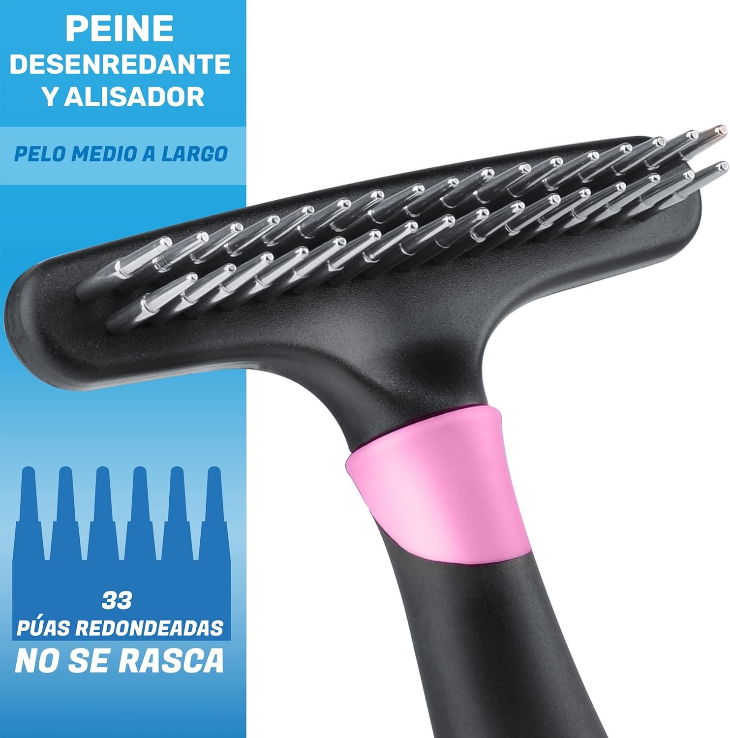 ✔ PINES METÁLICOS REDONDOS – Peine rastrillo para menos tirones, elimina el subpelo y masajea la piel.