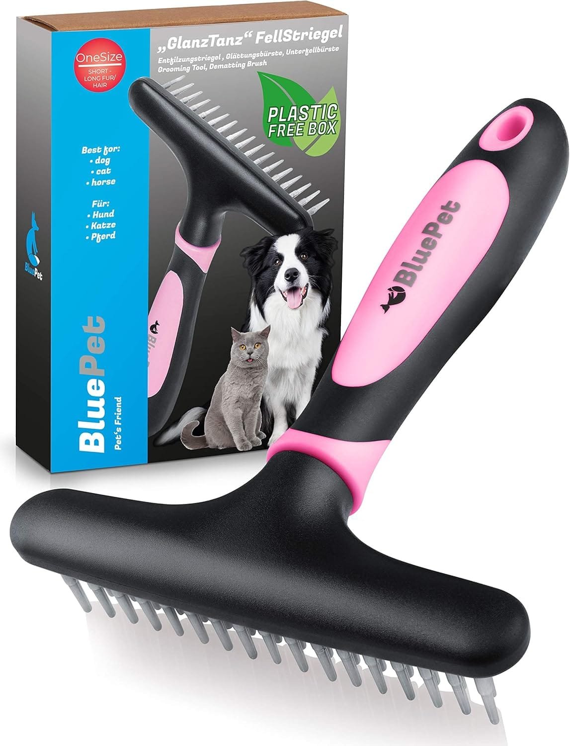BluePet® Peine desenredante para perros, gatos y caballos de pelo largo | Cepillo para perros y gatos que elimina los nudos, el subpelo y los enredos | Masaje agradable para su mascota
