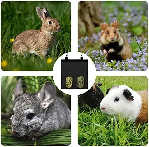 - Ampliamente utilizado: Estas bolsas de alimentación son ideales para almacenar heno y alimentar a una variedad de animales pequeños como conejos, conejillos de indias, hámsters, chinchillas, cerdos domésticos, entre otros. Su versatilidad las convierte en una elección adecuada para satisfacer las necesidades diarias de diversas mascotas.