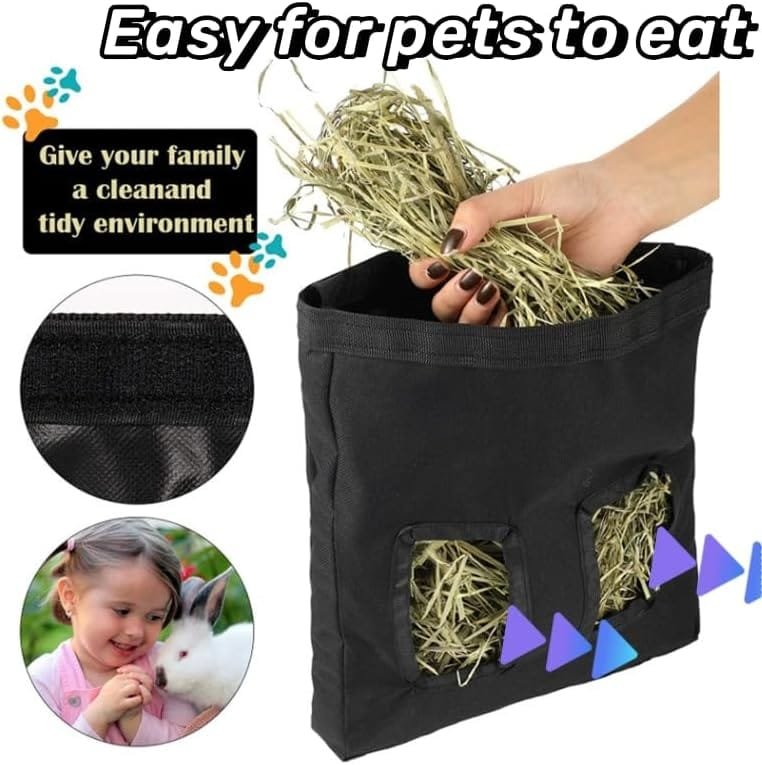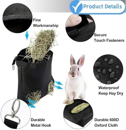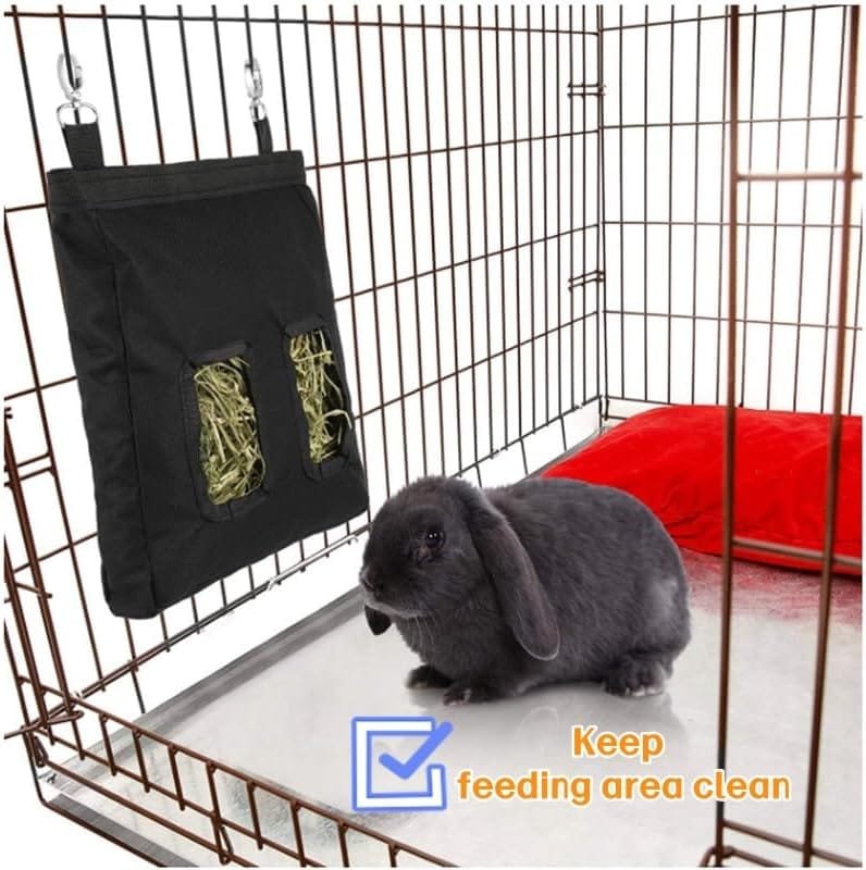 FÁCIL DE LIMPIAR: Lo mejor de este comedero de heno para conejos es que mantiene la casa limpia, guarda una gran cantidad de heno en una bolsa comedero limpia y ordenada y ayuda a reducir los residuos de heno. ¡Mantiene la zona de la jaula limpia y fresca!