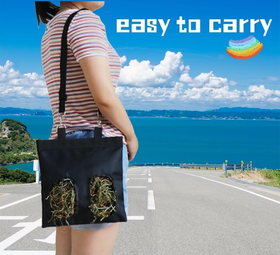 A PRUEBA DE Mordeduras: La bolsa de heno para conejos está hecha de tela Oxford 600D con bordes reforzados en los agujeros. Resiste las mordeduras y es duradera. Resistente a la abrasión, evita que la bolsa de heno sea rasgada por las mascotas. Duradera y se puede utilizar durante mucho tiempo.