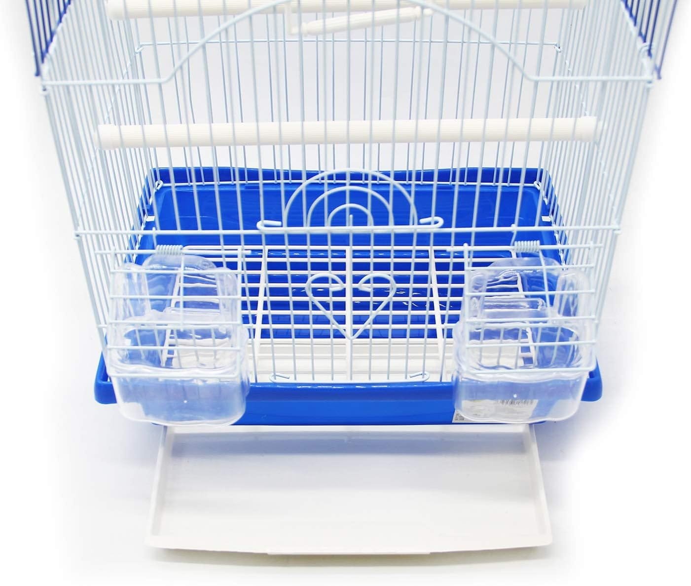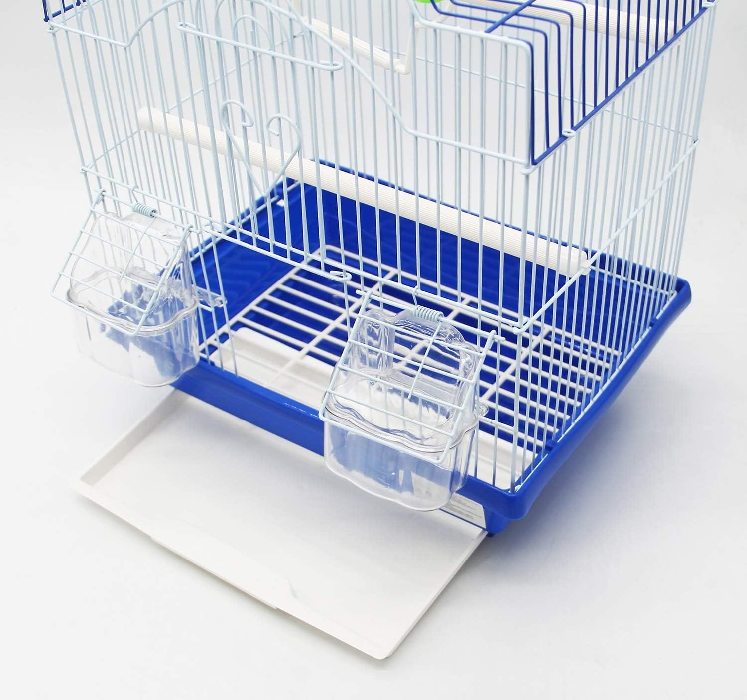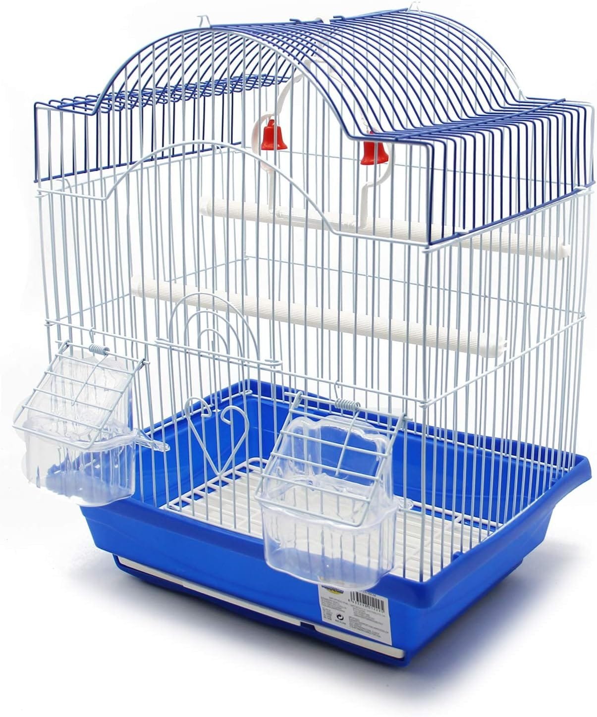 La jaula está fabricada en metal con los barrotes pintados con apoxi libre de plomo. Los accesorios son de plástico polipropileno.
