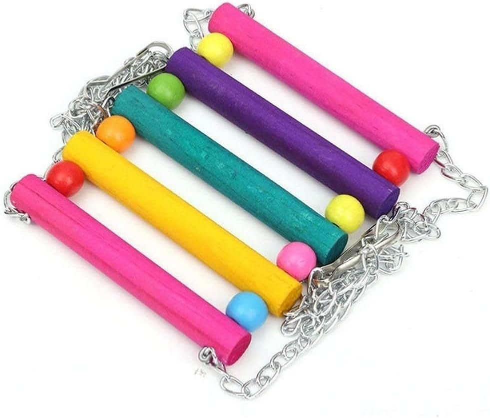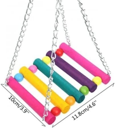 Dimensiones del columpio: 11,8 cm de largo x 10 cm de ancho (aproximadamente).Material: Madera resistente y segura para aves.Colores disponibles: Multicolor, para estimular la vista de tus pájaros.Diseño colgante: Fácil de instalar en la jaula.Accesorio versátil: Adecuado para aves de diferentes tamaños y especies.Promueve la actividad: Ayuda a mantener a tus aves activas y entretenidas.