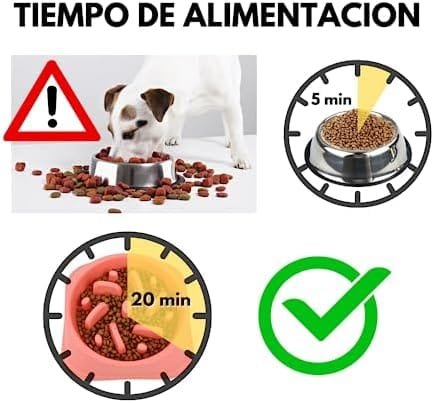 🦴 [MEJORAS EN SU SALUD] Comer rápido es un tema muy natural, pero puede convertirse en un problema para la salud de nuestras mascotas. Causando torsión gástrica u obesidad y asfixia. Ayudará a nuestra mascota a que tenga una mejor nutrición, minimiza el problema digestivo, evitando la producción de gases. Al comer despacio quedan mucho más satisfechos. El comedero de alimentación lenta mejorará su bienestar y así ellos estarán más sanos y felices.