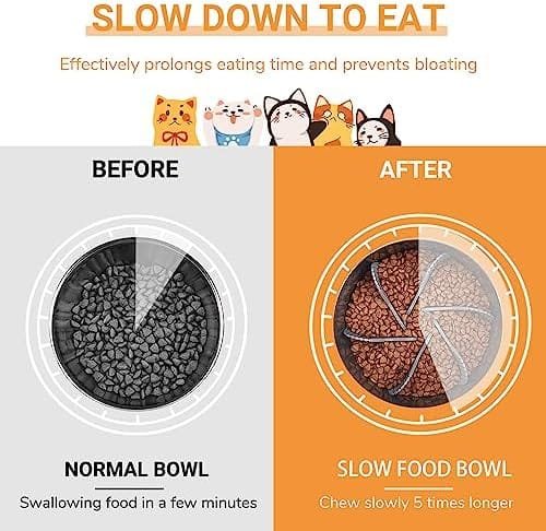 🐶 4.Dog Slow Food Bowl es la solución perfecta para ralentizar a los masticadores rápidos.El diseño de pieza pequeña que separa la cuchilla y el chasis actúa como un doble desacelerador de alimentos,lo que ralentiza la capacidad de su perro para agarrar alimentos,¡previniendo asfixia y asfixia!Coma despacio para una dieta más saludable.