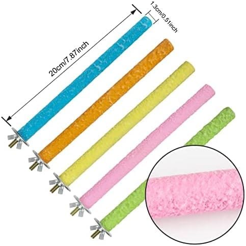 【Packaging】Las perchas para jaulas de loros se compone de 5 perchas para loros, son de diferentes colores, a saber, naranja, azul, verde, amarillo, rosa, colorido, apariencia simple y elegante