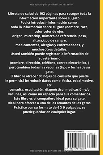 El “Cuaderno De Salud De Mi Gato” es tu aliado para cuidar a tu querido felino. Este completo libro de salud, con 102 páginas de información valiosa, es esencial para mantener un registro detallado de la vida de tu gato.