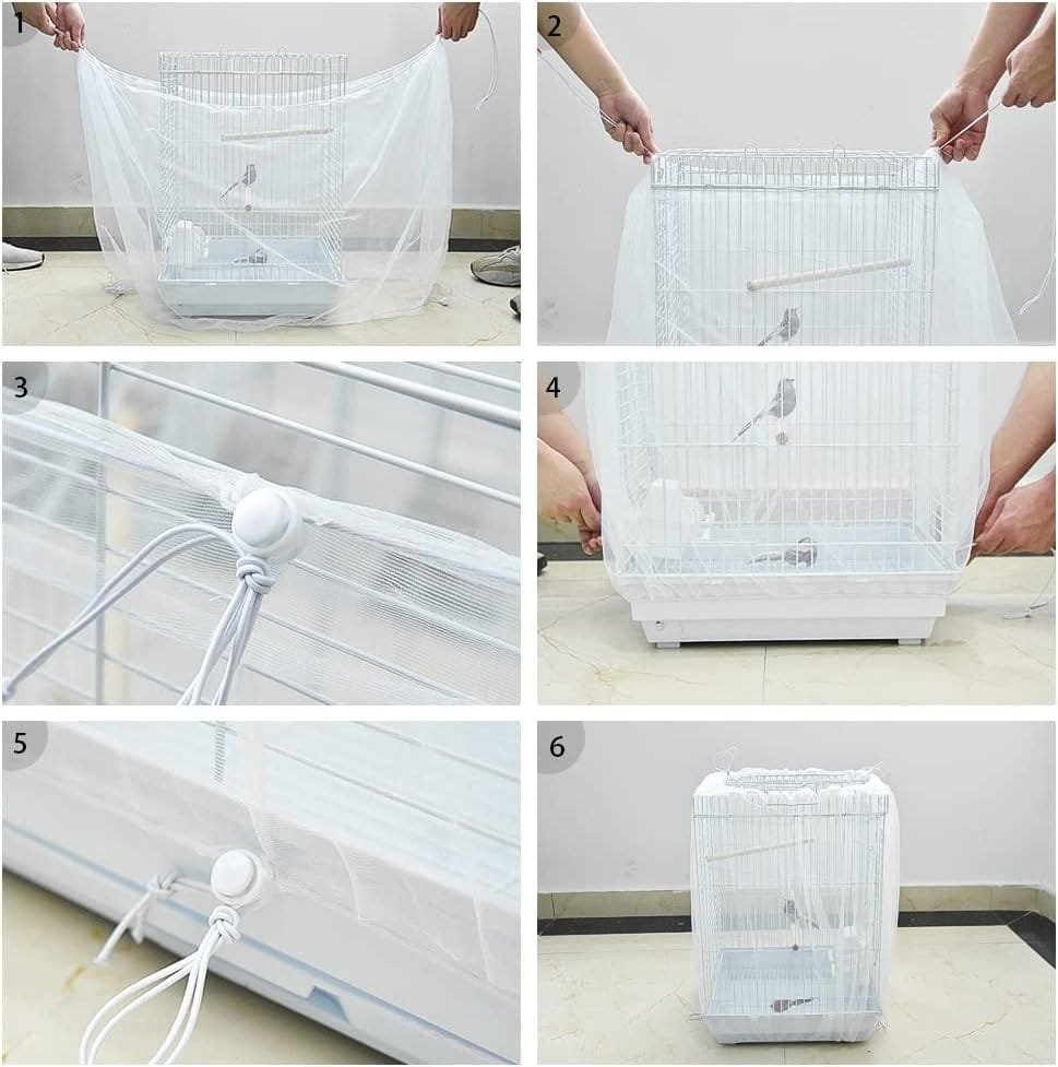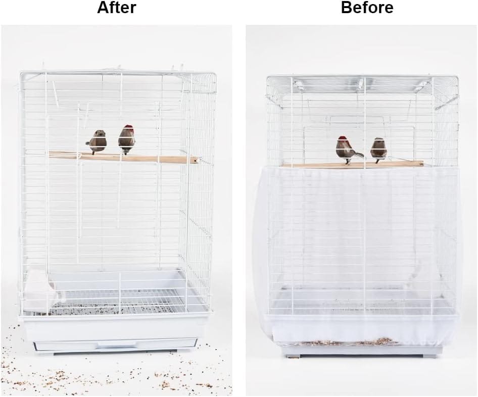 Práctica y cómoda Red de protección para jaulas, evita en gran medida que los restos de las semillas que caen por fuera.