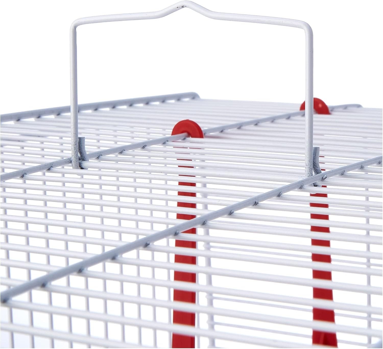 A la recherche dâune cage pour mon canari, jâai opté pour ce modèle et le résultat fut amplement positif avec une cage élégante, spacieuse aux barreaux robustes et bien équipée afin de pouvoir accueillir confortablement mon oiseau.Très facile à installer, elle propose 2 mangeoires tournants bien pratiques pour leur remplissage et bien conçues afin dâéviter toute possibilité de fuite du canari, un perchoir, 2 barres dâappui, un abreuvoir ainsi quâune balançoire, bref, tout le nécessaire afin de faire un oiseau heureux et épanoui.Lâaspect qualitatif et durable de cette cage est palpable à travers son poids, contrastant avec des modèles très légers dâentrée de gamme.Un autre point fort, consiste dans le nettoyage facile de la cage, grâce à son grand plateau amovible.Enfin, elle est dotée dâune poignée commode afin de pouvoir la transporter et la manipuler, tout en étant facile à accrocher en hauteur, position appréciée par les oiseaux et mon canari semble bien content dây loger, ce qui se traduit par son long chant beau et continu.