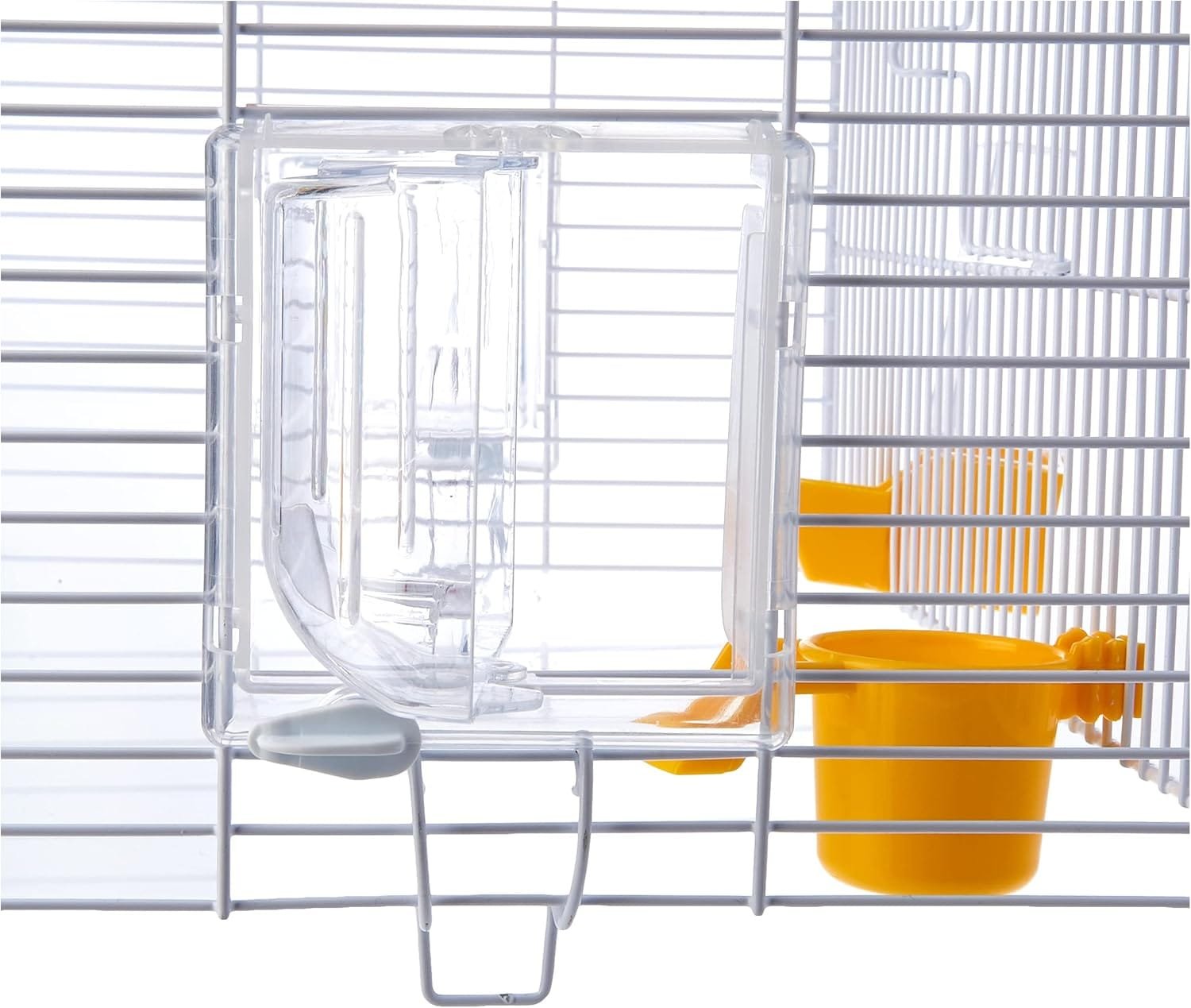 Incluye dos comederos giratorios Brava 2 de plástico transparente: diseñados para poder girarlos 180° y llenarlos desde el exterior, sin abrir ninguna puerta por donde el pájaro pueda escapar