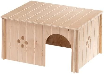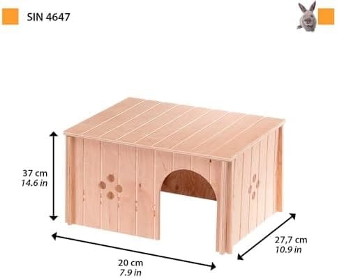 Diseñados con una bonita forma con un techo plano y entrada frontal, están decorados con elegantes agujeros que también facilitan la circulación del aire. Esta parte de la gama SIN de casas para animales pequeños y se fabrican exclusivamente con madera, que proviene solo de bosques gestionados de forma correcta y responsable según estrictos valores sociales y económicos.