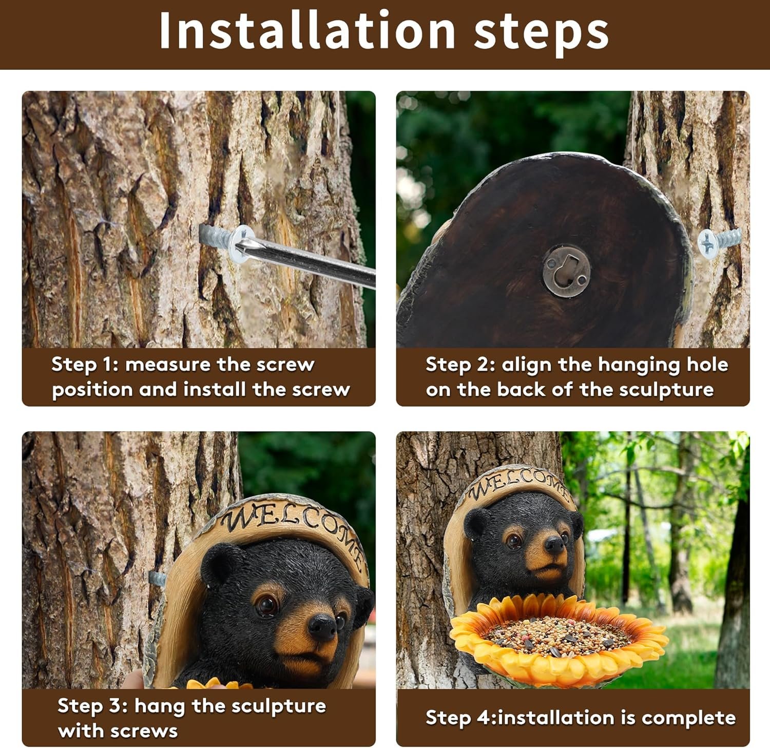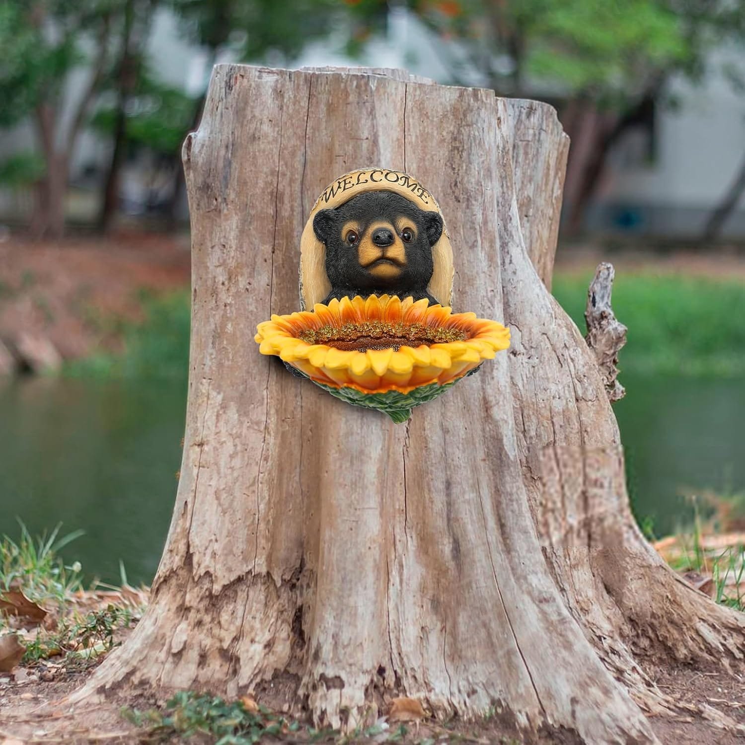 [Diseño de forma único]: la escultura de oso negro con comedero para pájaros está diseñada para decorar tu jardín, hacer que el jardín sea más vivo y hacer la vida más interesante. También puede poner comida en la cáscara de girasol para atraer a algunas aves para que coman y hacer que el jardín sea más vibrante
