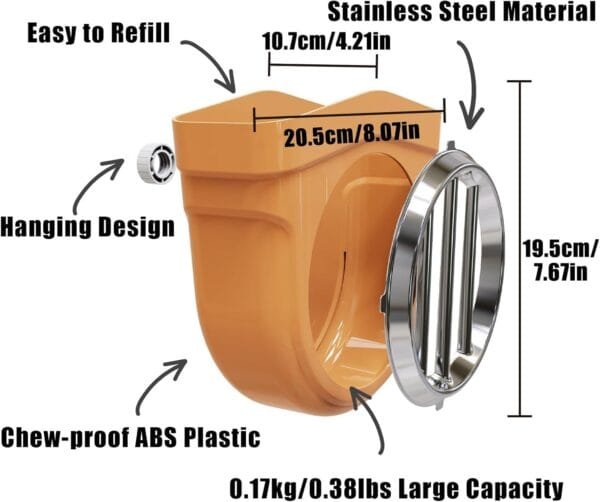 El diseño colgante es fácil de usar, lo que facilita el llenado y el mantenimiento, al mismo tiempo que mantiene ordenadas las áreas de alimentación.