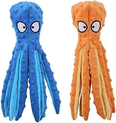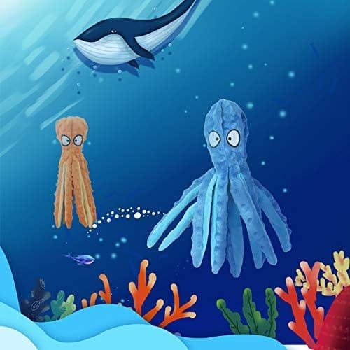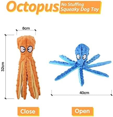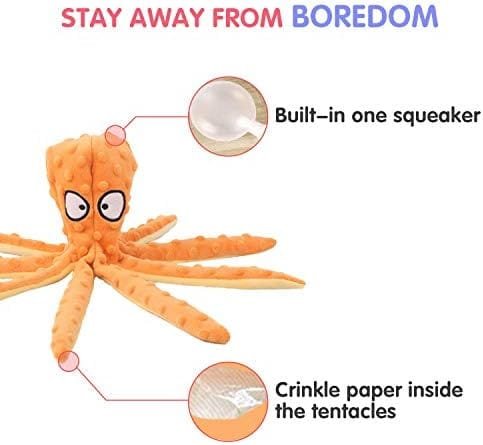 🐾【Interesante Diseño de Animalesr】 Este juguete de peluche con forma de pulpo de colores brillantes es un lindo personaje ,al perro le gustará masticarlo y perseguirlo por sí mismo que despertará el interés de tu perro y seguirá siendo entretenido.Puede ahorrarle mucho de su valioso tiempo.