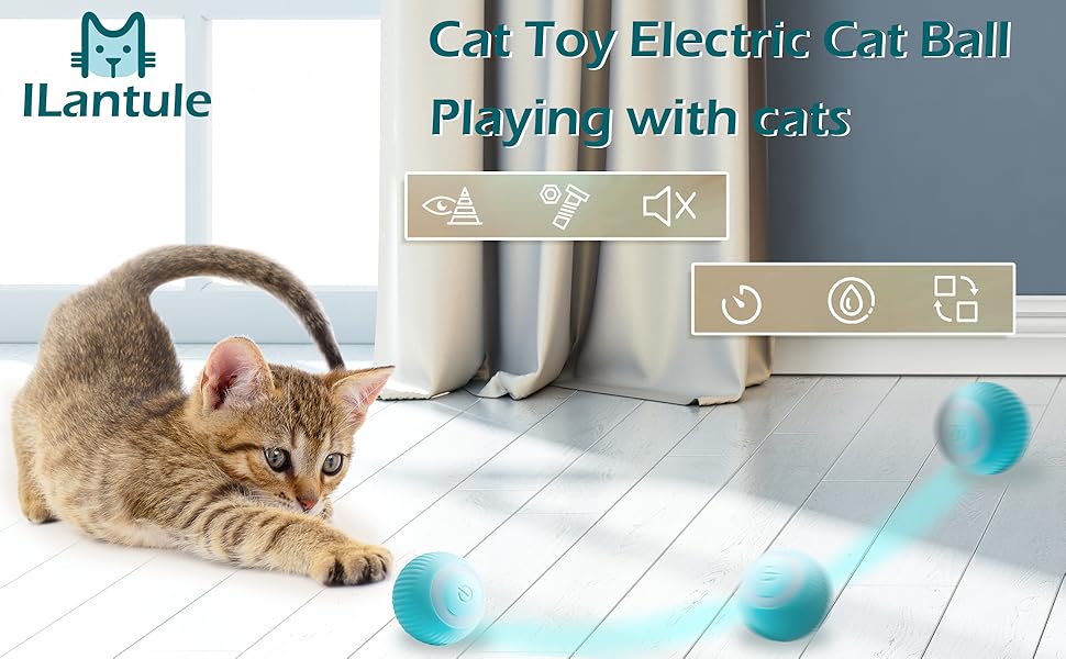 😻【Juguetes Interactivos Inteligentes para Gatos】Con solo presionar un botón, la pelota para gatos comenzará a girar, moverse o sacudirse 360 grados, atrayendo a los gatos para que los persigan y los atrapen. La pelota de juguete para gatos se moverá constantemente alrededor de tu casa mientras parpadea una luz blanca/verde/azul.