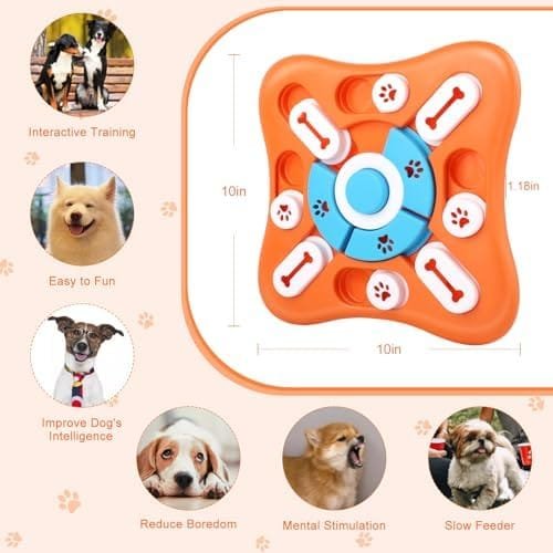 Adecuado para Todos Los Perros y Gatos: Colocando la comida o las golosinas bajo el deslizador, los perros o gatos pueden ganarse sus golosinas con un poco de habilidad y paciencia. Este juguete para perros no tiene piezas extraíbles, ya que el diseño tiene piezas de juego incorporadas que no se desprenden fácilmente. El juguete de inteligencia para perros (25,4 x 25,4 x 3 cm) es adecuado para perros grandes, medianos y pequeños
