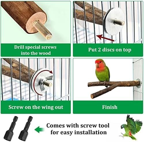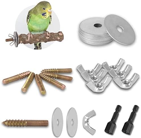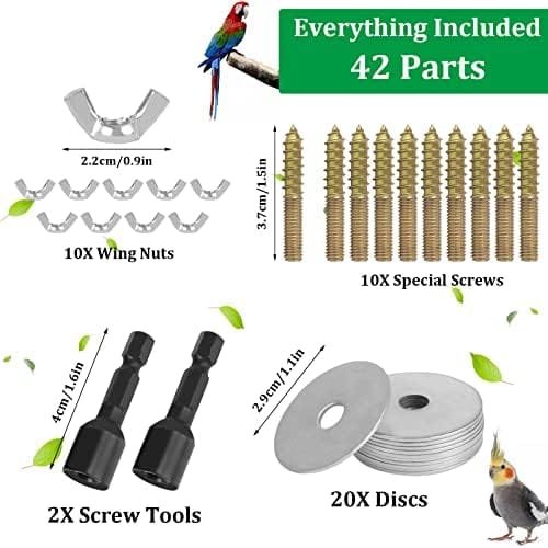 【Juego de jaulas para periquitos】 Recibirá un juego con kit de fijación para la construcción de barras de asiento compuesto por 10 tornillos especiales, 10 tuercas de mariposa, 20 discos grandes (Ø = 30 mm), junto con herramienta de giro M6.