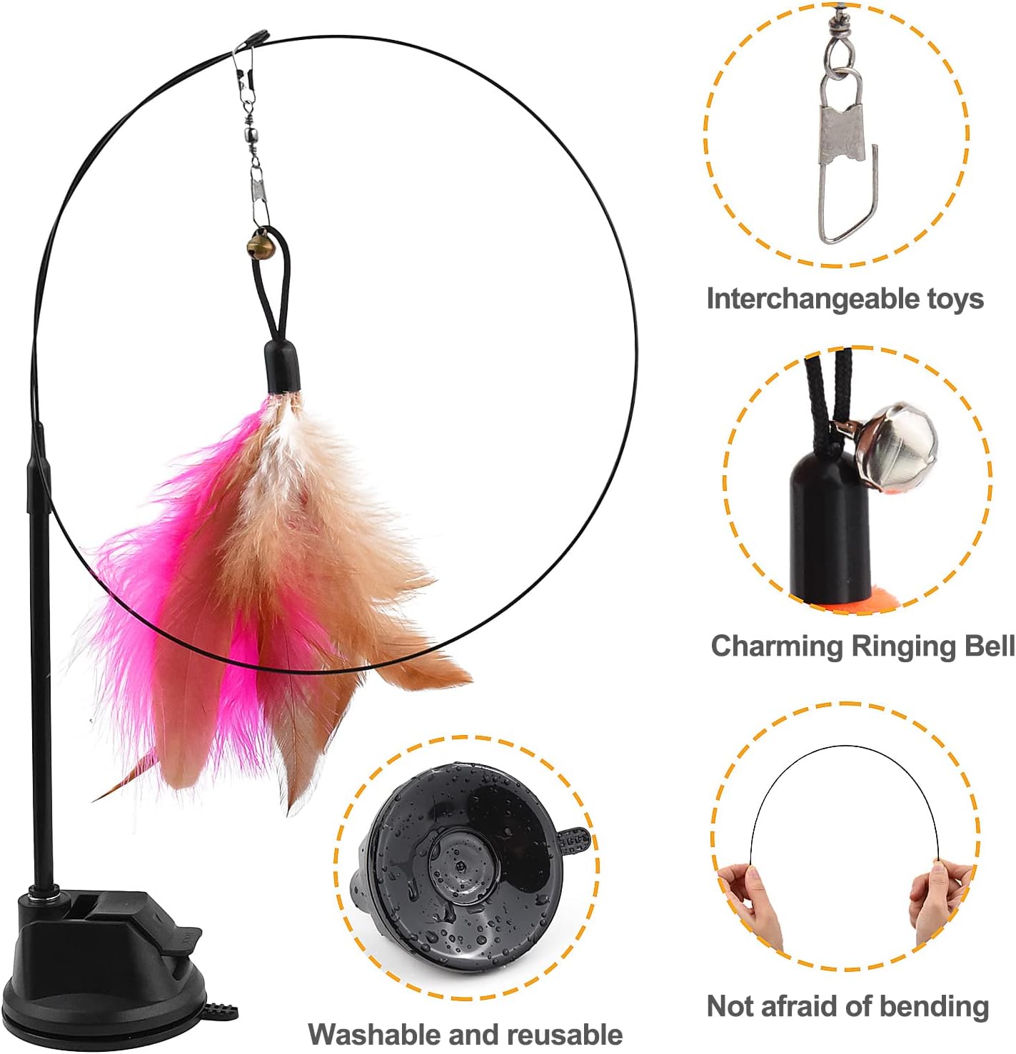 - Uso original: Cuando no estás en casa, la ventosa del juguete puede mantenerlo en posición vertical, permitiendo que el gato juegue con la pluma y no se sienta solo. También puedes sostener el juguete en tu mano para interactuar directamente con tus gatos.