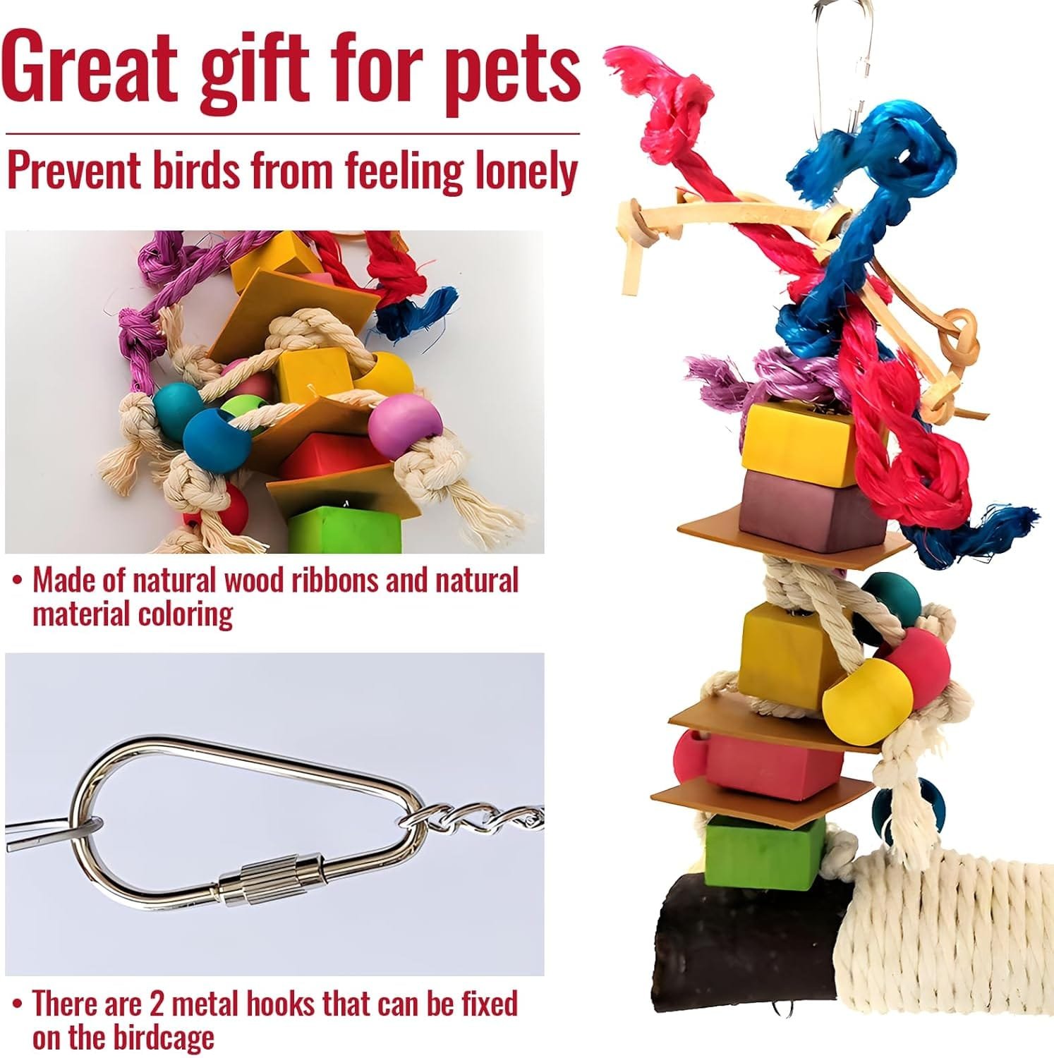 ❤ Materiales naturales y no tóxicos: este juguete para pájaros está hecho de ganchos metálicos, tiras de madera natural, colores con materiales naturales.