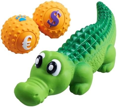 Material de caucho natural: estos juguetes para masticar para perros están hechos de materiales de caucho natural convirtiéndolos en juguetes para perros indestructibles. Son juguetes duraderos y se pueden masticar repetidamente sin dañar las encías y la salud de nuestro querido canino, este cocodrilo con pelotas para perros pequeños es el regalo ideal para tu pequeño amigo. Estos juguetes para perros indestructibles tienen buena resistencia y aguantan las mordeduras, los convierten en el juguete para perros pequeños ideal y también son juguetes para perros pequeños interactivos . Juguetes para perros interactivo y para masticar: el paquete incluye tres juguetes, uno en forma de cocodrilo y otros dos en forma de pelotas. Estos juguetes para perros pequeños pueden mejorar su interacción con su querida mascota, le ayudara a entrenar la capacidad de reacción del perro y a liberar su energía. Dientes limpios: Los juguetes para perros resistentes a las mordeduras le ayudarán a mejorar la higiene dental de su mascota. Regalos para perros pequeños: El paquete contiene tres juguetes, uno en forma de cocodrilo y los otros dos son unas pelotas. Son la mejor opción de regalo para perros pequeños. Los juguetes para masticar indestructibles brindan una variedad de métodos de entretenimiento para su mascota que le aportara una ayuda mental y física cuando su canino este en casa esperándole, evitando el aburrimiento, la ansiedad y la masticación destructiva.