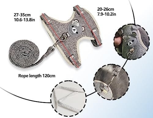 [Material de alta calidad]: Nuestra correa de conejo está hecho de alta calidad por el material de nylon suave y poliéster para garantizar la resistencia y durabilidad, y también garantizar su seguridad. Se puede utilizar para tirar de su conejo mascota con confianza.