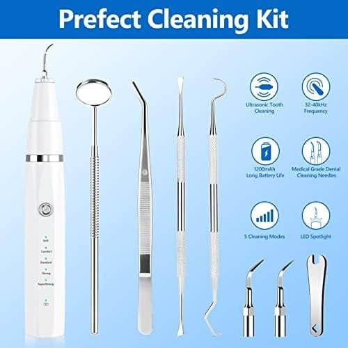 Viene con un kit profesional de limpieza de dientes: nuestros limpiadores dentales para mascotas vienen con un kit de limpieza profesional. Puede limpiar cualquier lugar y quitar el sarro fácilmente. Limpia fácilmente los alimentos y los residuos en el hueco. Este será el kit de limpieza perfecto para tu mascota.