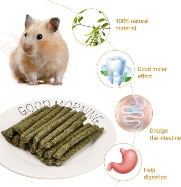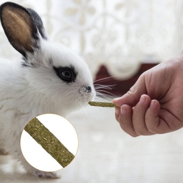 1. Nuestras barritas están hechas de heno de pasto timothy, que son completamente naturales y brindan fibra adicional para sus mascotas. Estos palitos ricos en fibra son perfectos para promover el crecimiento de dientes sanos y se adaptan a varios animales pequeños.