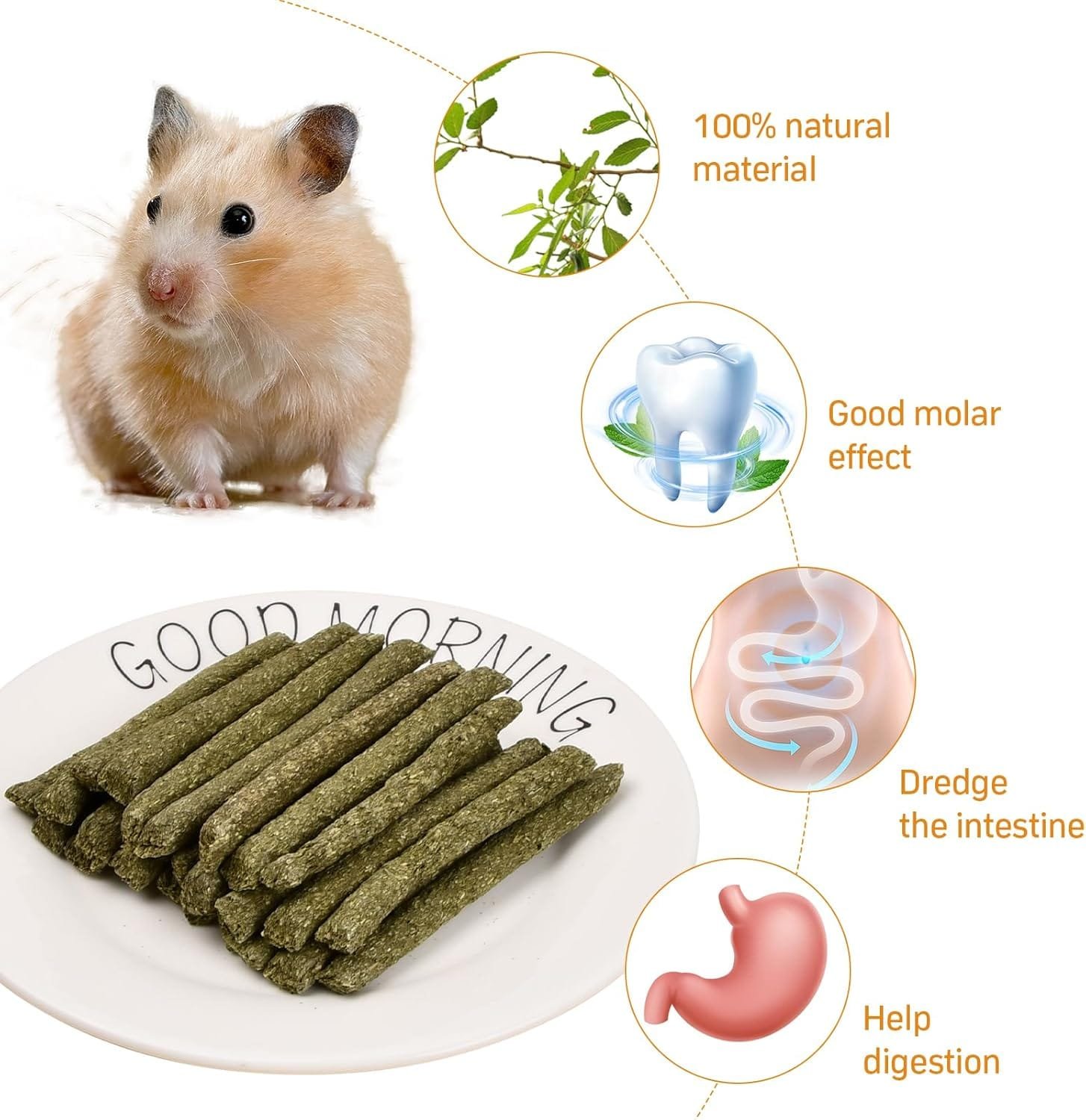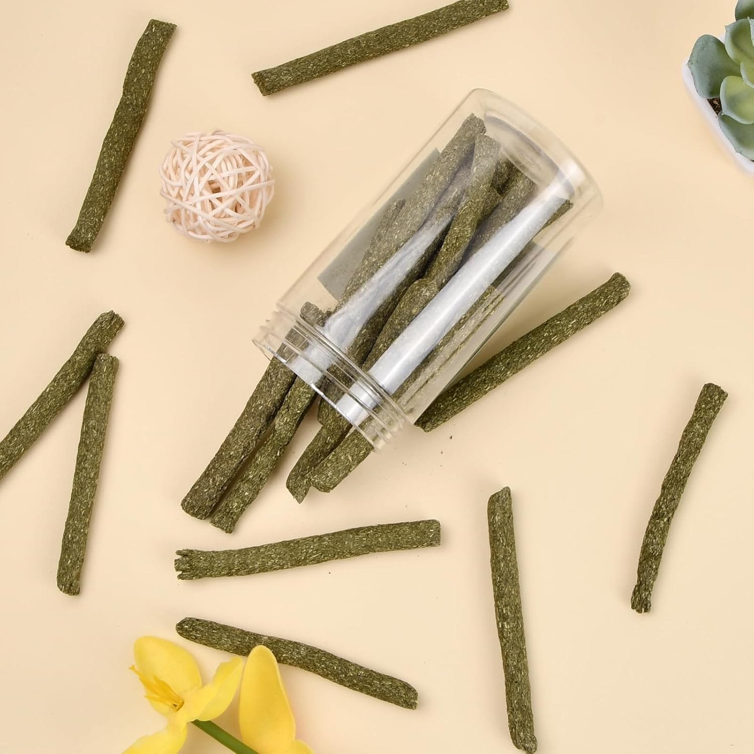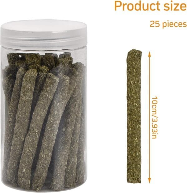 【El paquete incluye】 Recibirás 25 palitos de heno de timothy. Cantidad suficiente, suficiente para satisfacer las necesidades de tu mascota.