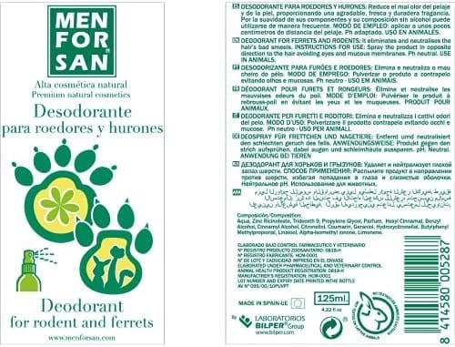 El desodorante para roedores, conejos y hurones pertenece a la gama vegan friendly de MENFORSAN. Este producto no contiene ingredientes de origen animal y durante ninguno de los procesos de fabricación y desarrollo del producto se emplearon productos animales, subproductos o derivados.