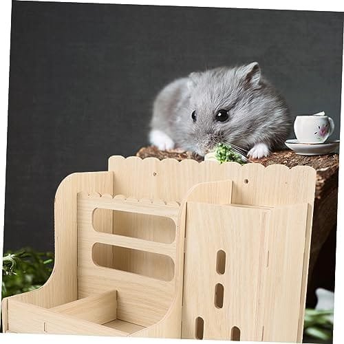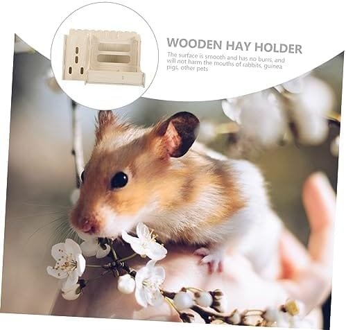 Suministros para hámsteres: el estante de madera para heno es seguro y duradero, no se decolora ni rompe fácilmente. Gracias a su diseño especial, es completamente seguro.