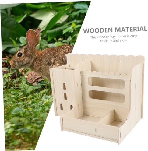 Comedero de heno de madera: estructura resistente que evita que se vuelque y se derrame este soporte de heno de madera. Fácil de montar y limpiar.