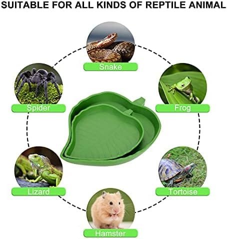 Calidad y seguridad: el plato de agua de hojas de reptiles está hecho de plástico de calidad sin astillas ni rebabas, proporcionando un ambiente limpio y ordenado para tu mascota. Además, este cuenco de agua para reptiles es lo suficientemente poco profundo para que tus pequeños reptiles entren y salgan sin preocupaciones.