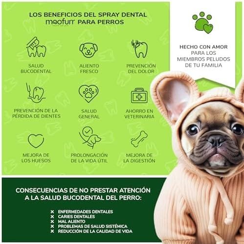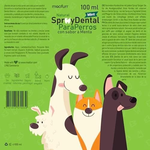 Fácil de usar: Con una simple pulverización en las comisuras de la boca de su perro y un suave masaje, puede proporcionar y apoyar el cuidado dental de su perro en casa. El uso recomendado del spray es de 1 a 2 veces al día para mantener una higiene bucal perfecta.