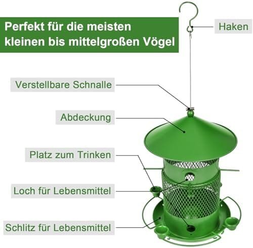El comedero verde viene con comedero, muchos agujeros de alimentación y 4 orificios para beber, ideal para alimentar a la mayoría de pájaros pequeños y medianos en todo tipo de climas. También puede ser un bonito regalo para un amante de la naturaleza en su cumpleaños.