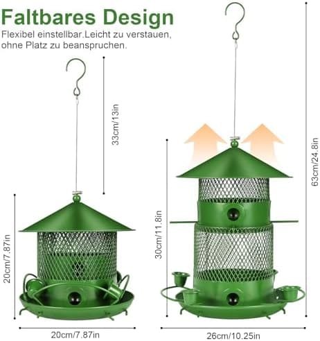🌲【Gran capacidad con 2,5L】Nuestro comedero plegable para colibríes puede contener hasta 2,5 lb de semillas. Se puede llenar con una variedad de semillas para atraer a los pájaros, como semillas de girasol de aceite negro, semillas de cártamo para atraer a pinzones rojos, herrerillos, pinzones domésticos, pájaros, pájaros azules, currucas, estorninos y ¡mucho más!