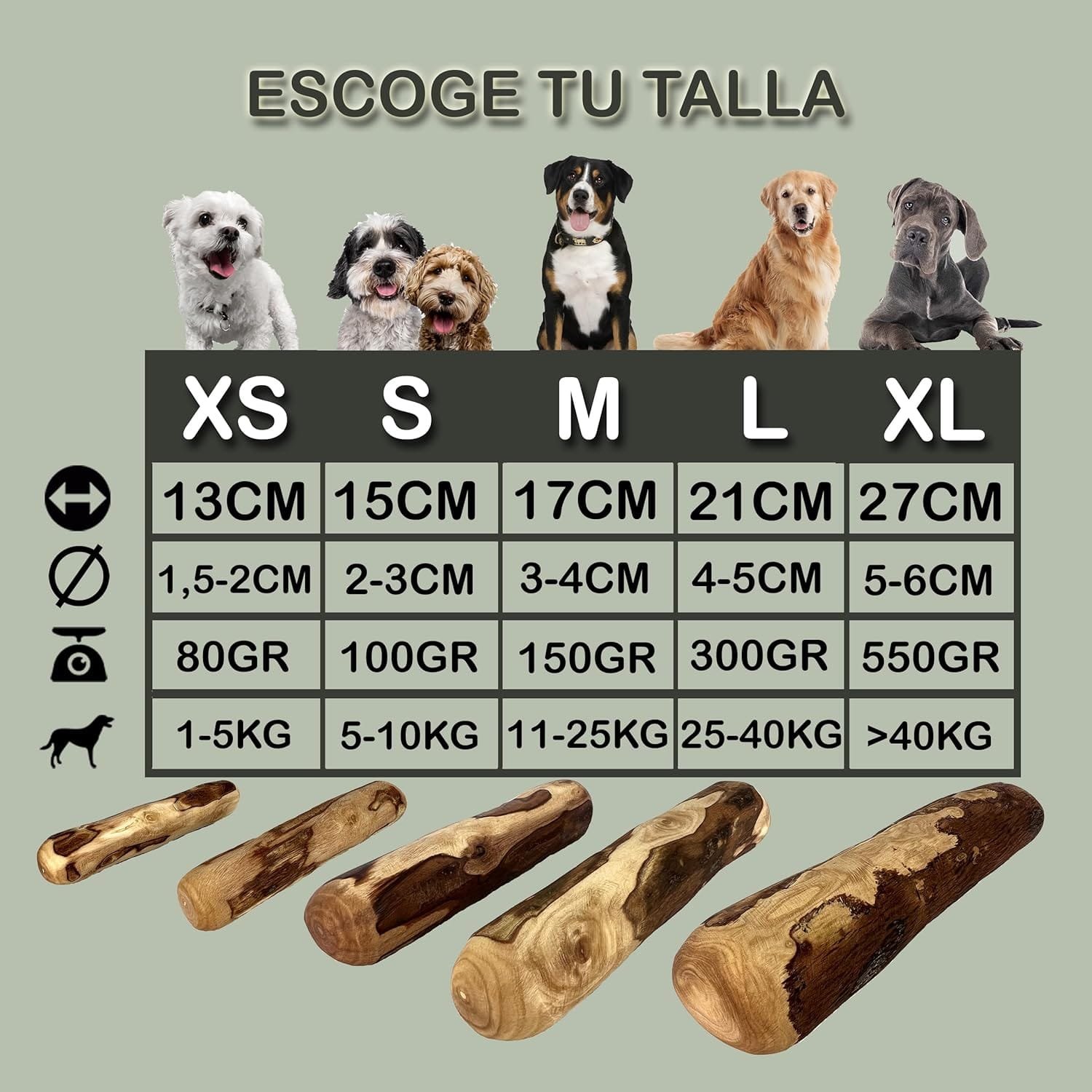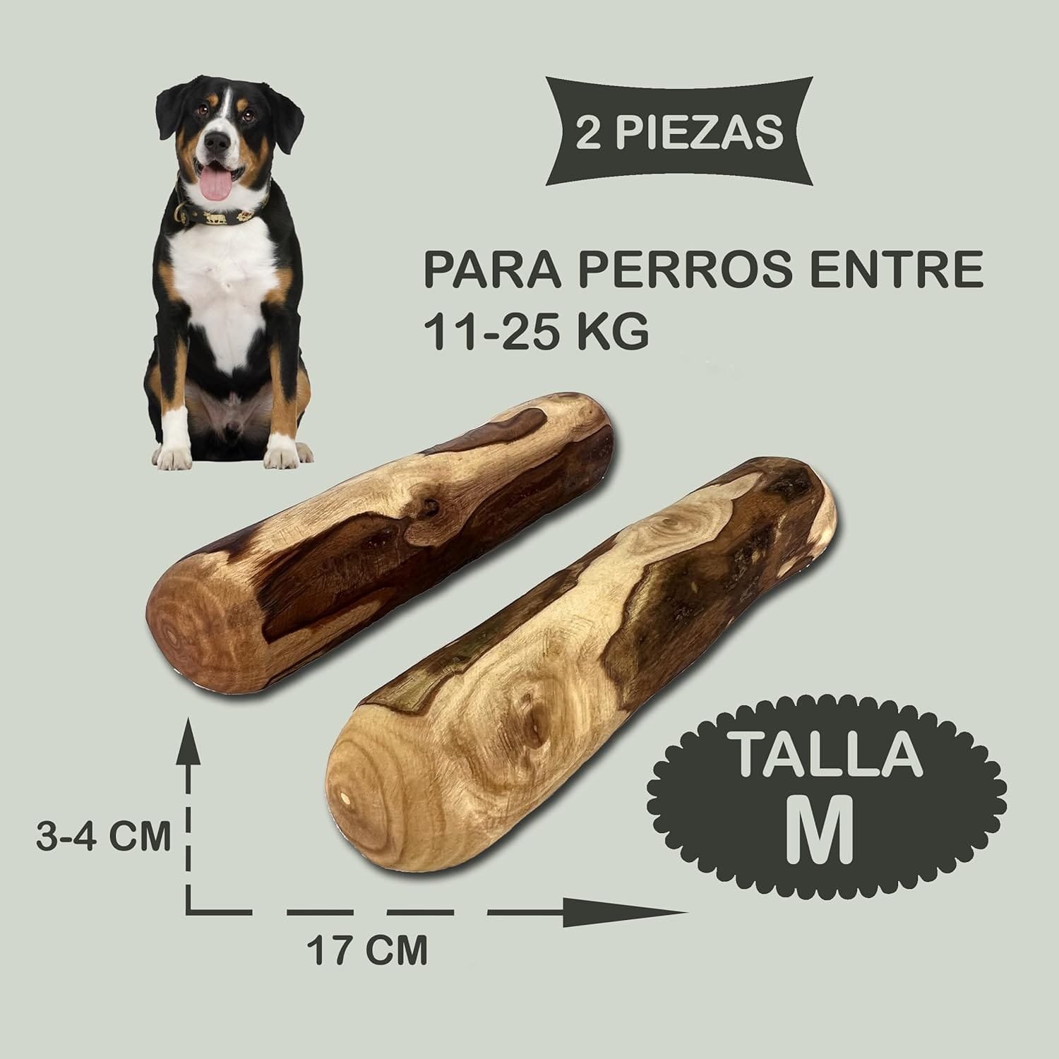 Mordedor Natural de Madera de Olivo para Perros | TALLA M | 2UDS | (17CM) | Bañado en Aceite de Oliva | Juguetes para Perros | Elimina Sarro | Palo Antiestres Perro | Calidad Ambiental Certificada
